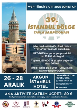 Bugün dünyanın birçok noktasında artık bir spor dalı olarak kabul gören Tavla`nın ülkemizde de benzer saygınlığa erişmesi ve daha büyük kitlelere tanıtılması hedefleriyle 2000 yılında Türkiye`nin ilk profesyonel tavla organizatörü olarak İstanbul`da doğan WBF-Türkiye, geçen yıllar içerisinde yurdun 10`larca şehrinde 100`lerce saygın faaliyete imza atarken, özellikle “Modern Tavla” oyununun tanıtılması ve geliştirilmesi adına ülkemizde birçok ilki gerçekleştirmiştir.